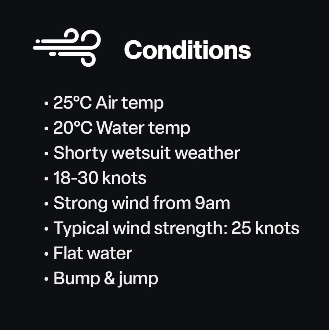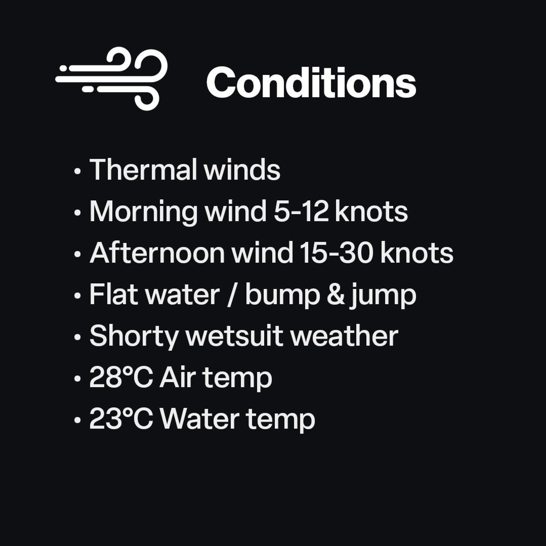 Strong reliable winds, super flat water and warm temperatures create an ideal setting to push your limits, build confidence, and level up faster than you thought possible