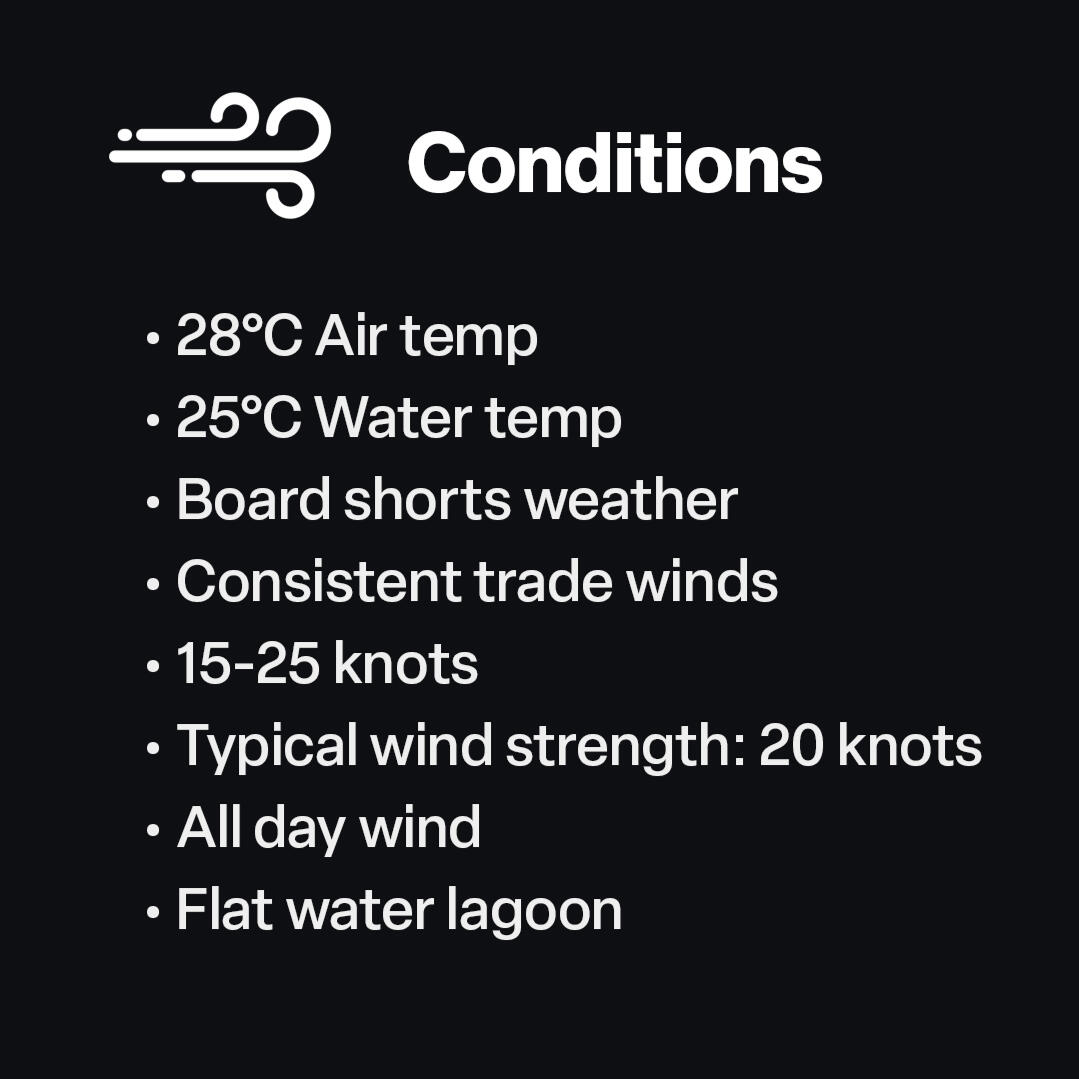 Consistent year-round winds, a massive lagoon and an epic speed spot create the perfect environment to refine your technique, and push your skills to the limit